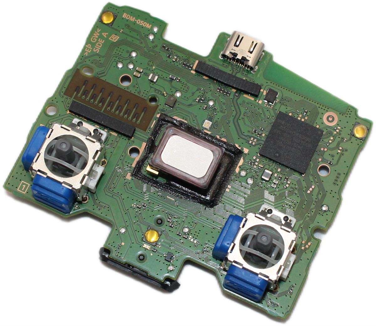 Angeboten wird ein Sony PlayStation 5 Controller Mainboard (BDM-050R) mit verbauten Hall Effect TMR Analog Sticks in Blau.